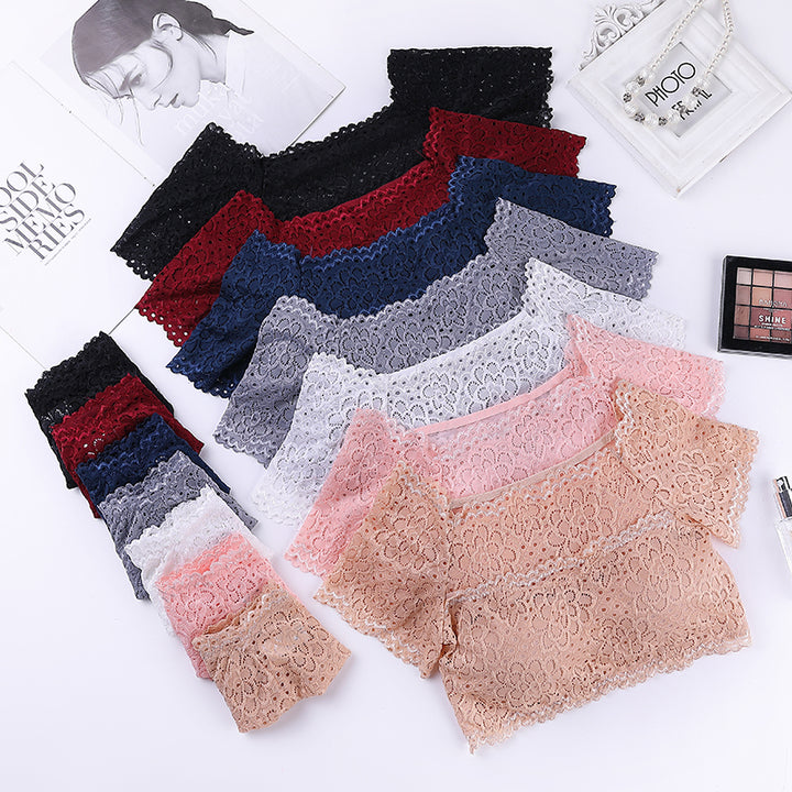 Women's Sexy Silk Bra and Underwear Set Short Lace Strapless Padded Top with Panty Soft Design for Summer